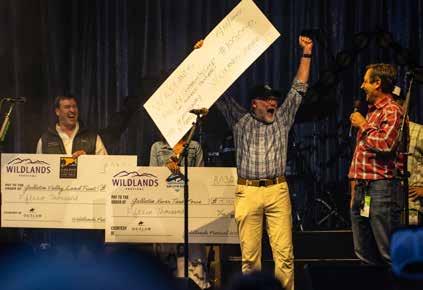 Wildlands Festival in Big Sky, Montana is rooted in creating a big impact for wild and scenic spaces through world-class music and community, including Grammy-winning artist, Brandi Carlile. The 2022 event raised over $145,000 for local charities devoted to conservation efforts. Inset: Eric Ladd, Chairman of Outlaw Partners presenting the check to Whitney Montgomery, CEO of Big Sky Community Organization. PHOTOS BY TOM ATTWATER