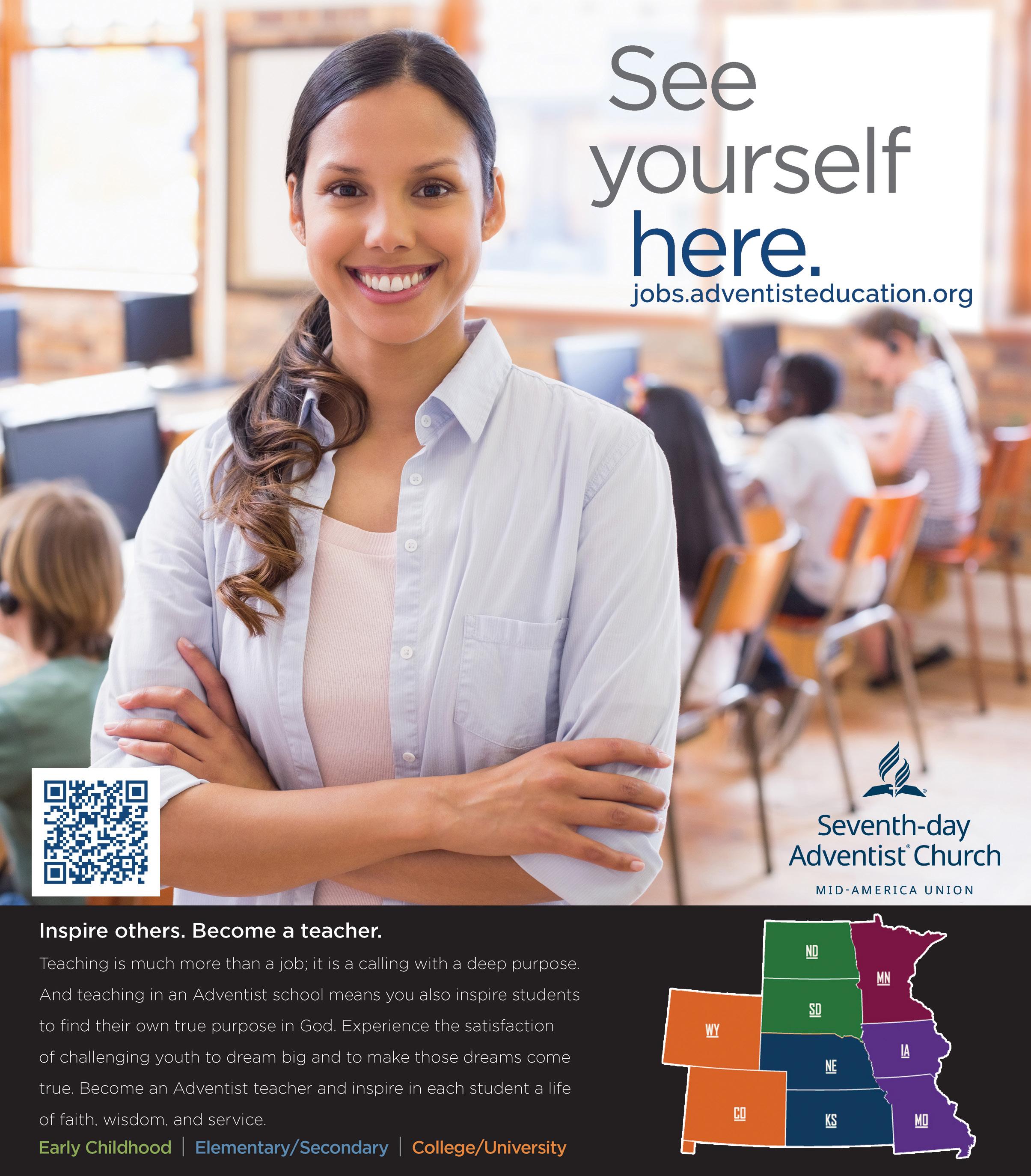 OUTLOOK (ISSN 0887-977X) March 2023, Volume 44, Number 3. OUTLOOK is published monthly (10 months per year) by the Mid-America Union Conference of Seventh-day Adventists, 8307 Pine Lake Road, Lincoln, NE 68516. Printed at Pacific Press Publishing Association, Periodical postage paid at Lincoln, NE and additional offices. USPS number 006-245. Postmaster: Send all UAA to CFS. Free for Mid-America church members and $12 per year for subscribers. ©2023 Mid-America Union Conference of Seventhday Adventists. Unless otherwise credited, all images are iStock. Adventist® and Seventh-day Adventist® are registered trademarks of the General Conference of Seventh-day Adventists.