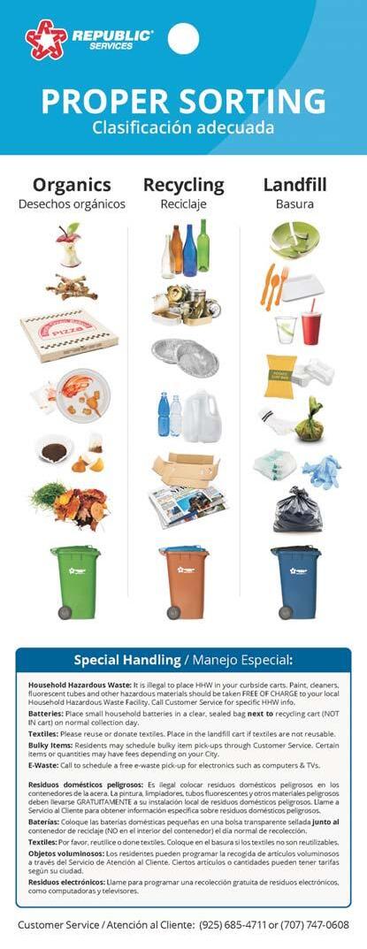 Time for Lid Flippin’! SB1383requireslocaljurisdictionsto monitorcontaminationandpropersortingoforganicsandrecyclingby performingannualrouteaudits.RepublicServicesemployeesmaybeinyour neighborhoodthroughouttheyearperforming“lid-flips”andlookingintoall3 ofyourcarts—landfill,recycleand organics.Wearelookingforpropersortingofmaterialsineachcartandmay leaveaneducational“OOPSTag”if somethingshouldhavegoneintoadifferentcart.