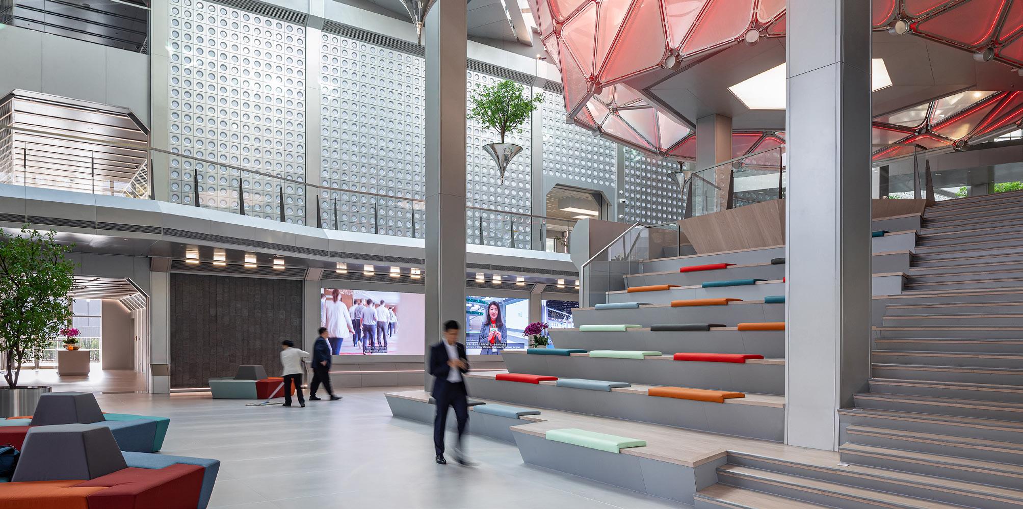 The renders feature a series of modular, diamond-shaped wooden structures, allowing for easier future updates and expansions to the building.