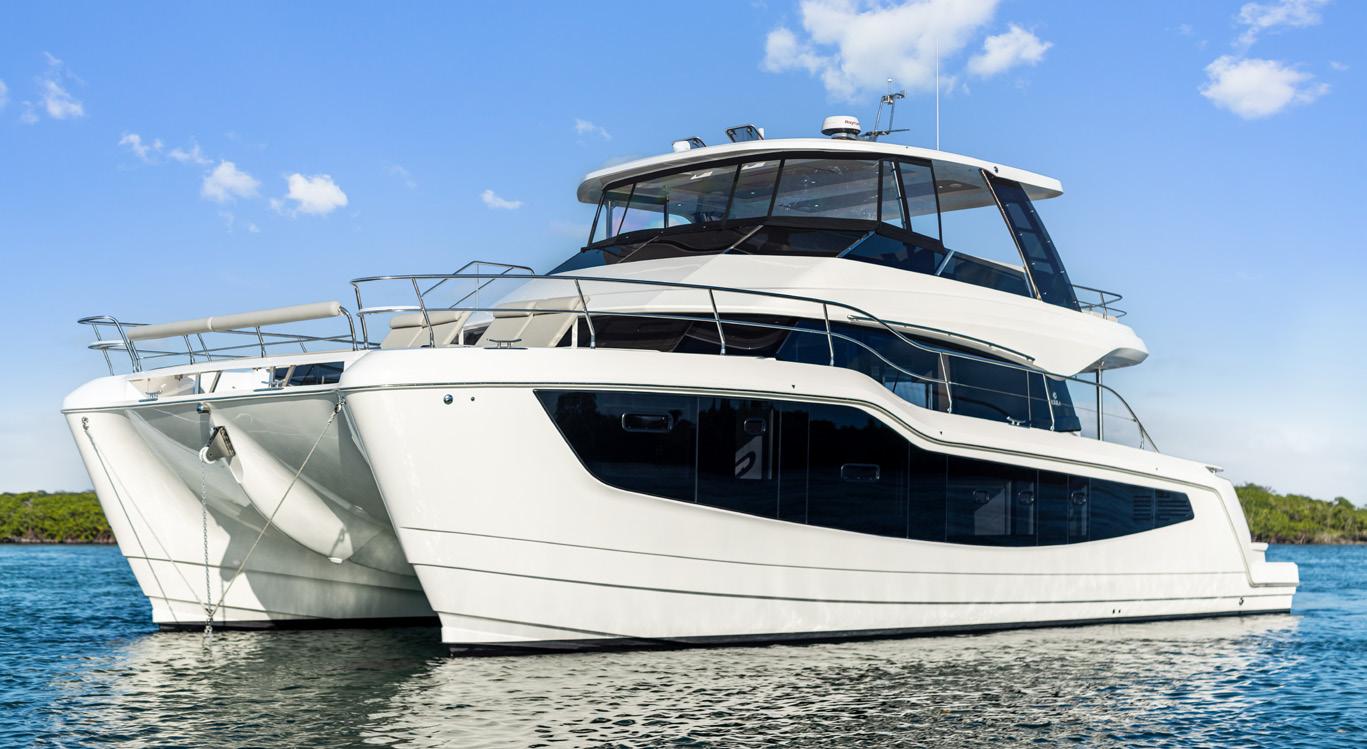 The introduction of this product marked a new era in the design of power catamarans, featuring an explorer-look aesthetic, high freeboard, a single-level, full-beam owner’s suite, an enhanced flybridge, and options for both diesel and hybrid power.