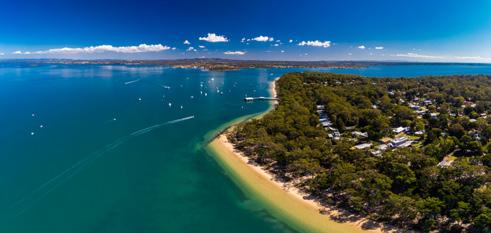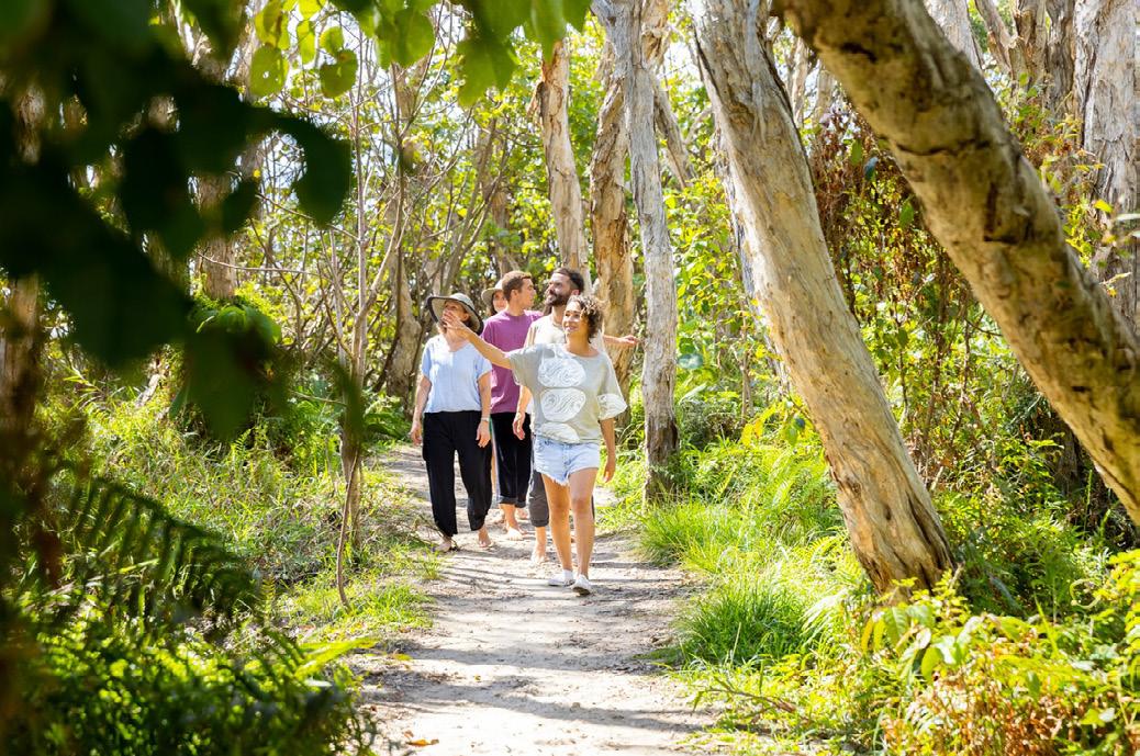 such as bushwalking, birdwatching, and water sports. Journey across the water to the white sand beaches of North Stradbroke Island/Minjerribah, or embark on an adventure along the North Gorge Walk, which offers a scenic route through rocky outcrops and the chance to spot dolphins, manta rays, whales, turtles, fish, and sharks. While there, join a First Nations cultural tour and learn about the history of the Quandamooka people from a local guide.
