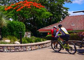 The Moreton Bay Region is a picturesque blend of coastal towns, vast national parks, and towering mountain ranges. Though under an hour from the city centre, this idyllic region will feel worlds away from Brisbane’s bustling urban landscape. The area offers a diverse range of dining options, including wineries, quaint cafés, and beachside fish and chip shops, as well as plenty of fun activities, such as whale watching, llama walks, and trail biking.