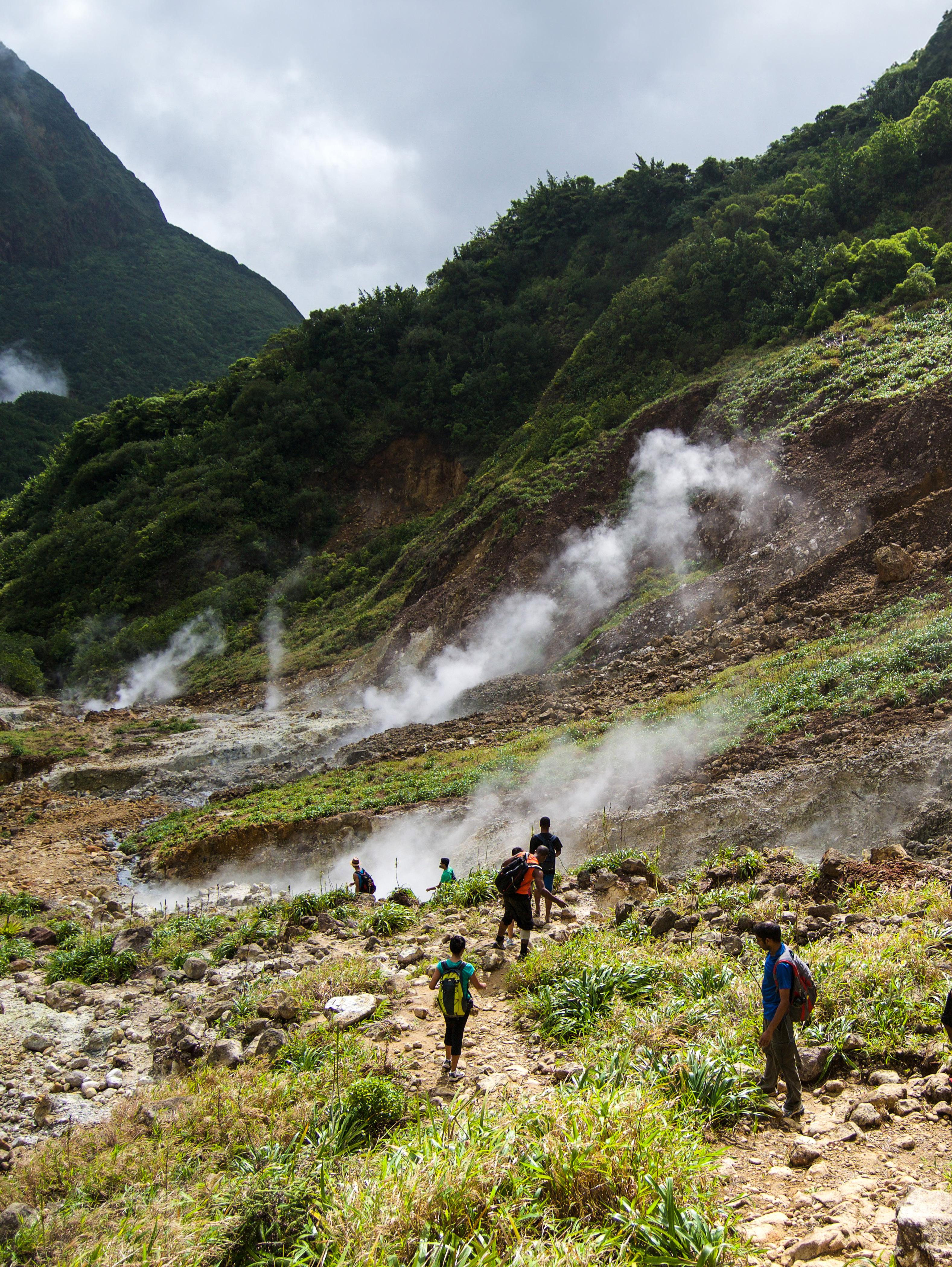 After passing through myriad rainforests and the eerie Valley of Desolation, hikers will find themselves at a flooded crater bubbling from the depths of heat below.
