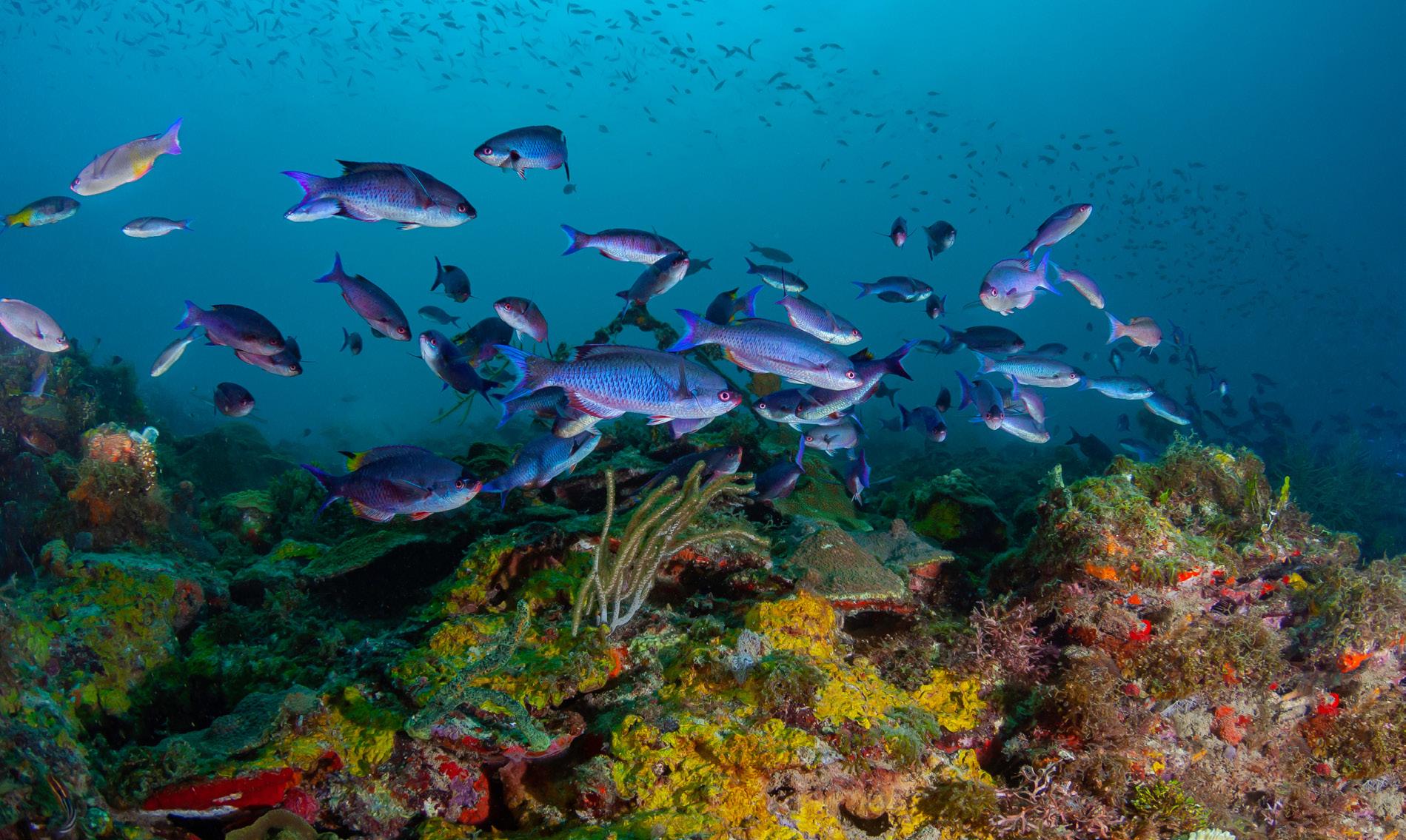 When looking down from a bird’s eye view, these green islands provide a stark contrast to the white sand beaches surrounding them. Plunging even deeper beneath the cobalt waves, there are so many colours from the coral and marine life you will think you are looking through a kaleidoscope as you swim alongside groupers, parrotfish, scorpionfish, and sea cucumbers.