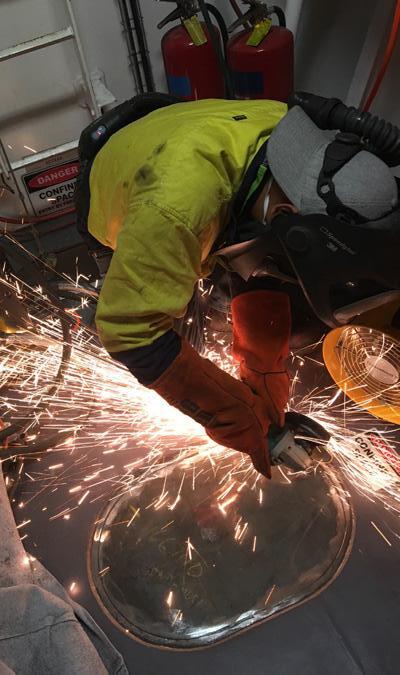 assembled with incredible speed, and then fabricated and installed a new 120-metre DIN150 316 stainless steel water-mist line spanning multiple compartments and levels. Thanks to the team’s dedication and expertise, HMAS Stalwart sailed on schedule, fully operational, earning the GMS team a commendation from Navantia, and a letter of appreciation from the Commanding Officer.