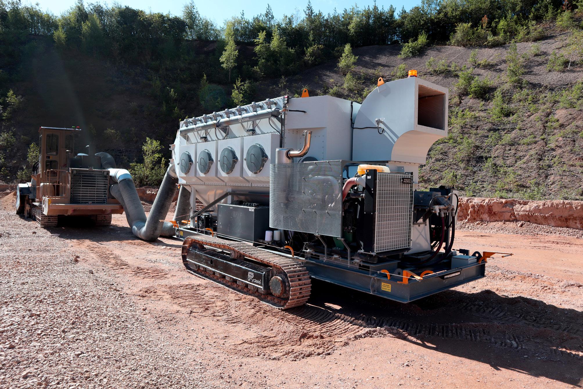 These track-mounted dust collectors are easy to transport and operate with minimal setup, eliminating the need for costly ducting. Powered by a diesel motor, they don’t require an external power supply, making it easy to relocate them during operation alongside dust-generating equipment. In addition, hybrid-powered track units support environmental and sustainability agendas.