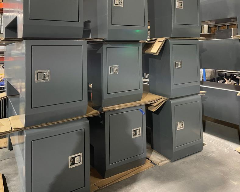 essential storage on a flatbed/carrier tow truck. These boxes have ranged in size, door styles, and materials (steel or aluminum). In each case, careful attention is given to create a robust box that holds up to the rigors of towing while refined in style to compliment the truck and body itself. The latest box project is a joint development with Jeff Cross to revamp his Streamliner Box — first made popular over 10 years ago — and is quickly recognized as the best underbody box ever built. As a manufacturer and supply partner with Miller Industries for over 40 years, Collins is committed to continuing to improve, develop, and advance our products, enhance the user experience, and keep pace with growing demand.