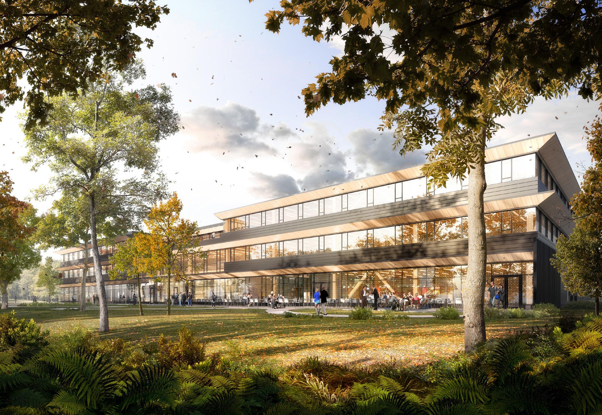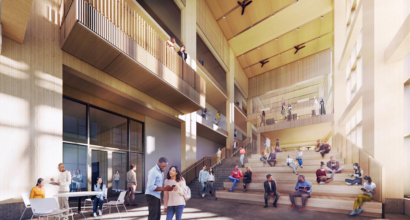 The building will house over 3,400 students across 10 floors in the School of Architectural Technology and Computer Science. GBC mandated the company to design a low-carbon, future-proof smart building from mass timber, which meets the stringent municipal sustainability codes of