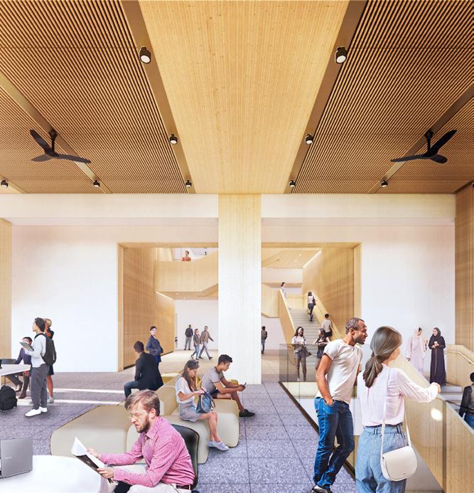 “We’ve created a series of public spaces throughout the entire height of the building, ranging from large, wide-open communal spaces to intimate, contemplative spots. These spaces are open to the public, accessible from nearby walking and cycling trails, and help connect the general public with the student population.