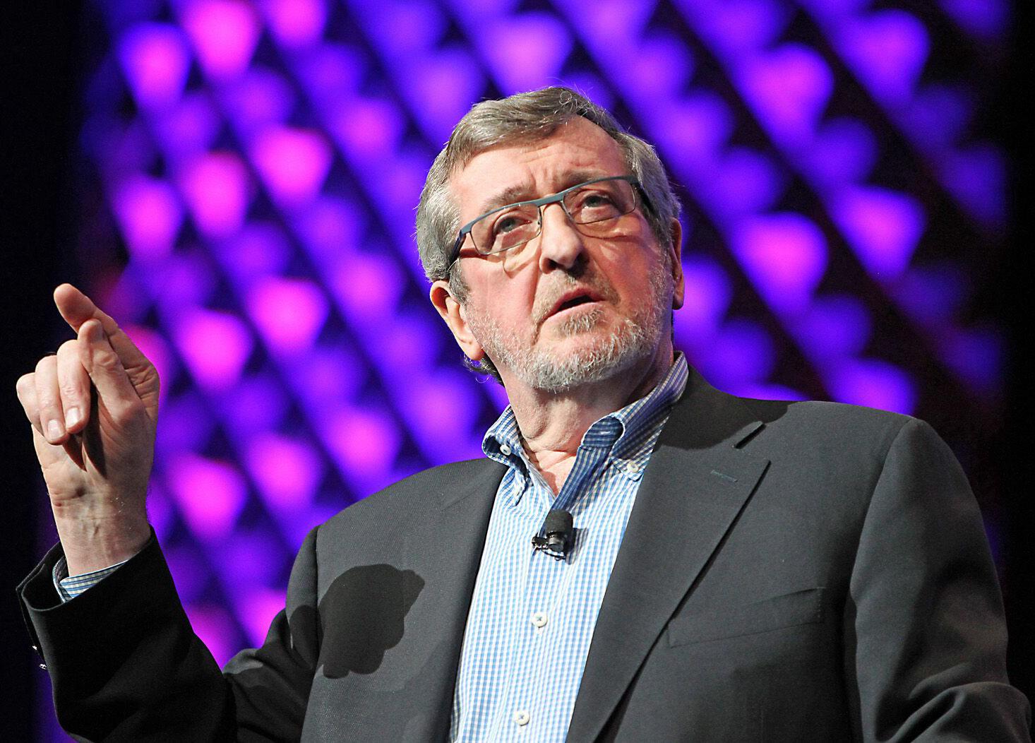 Michael Dowling, President and CEO of Northwell Health, speaking at a rally