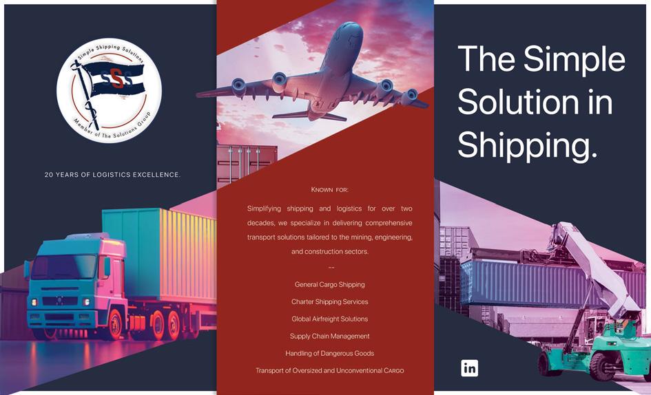 Industry Expertise: Decades of experience across diverse industries, including mining and energy, to meet unique logistical needs with precision. End-to-End Services: Comprehensive solutions from road, air, and sea freight to specialized warehousing and customs clearance, o ering seamless support every step of the way.
