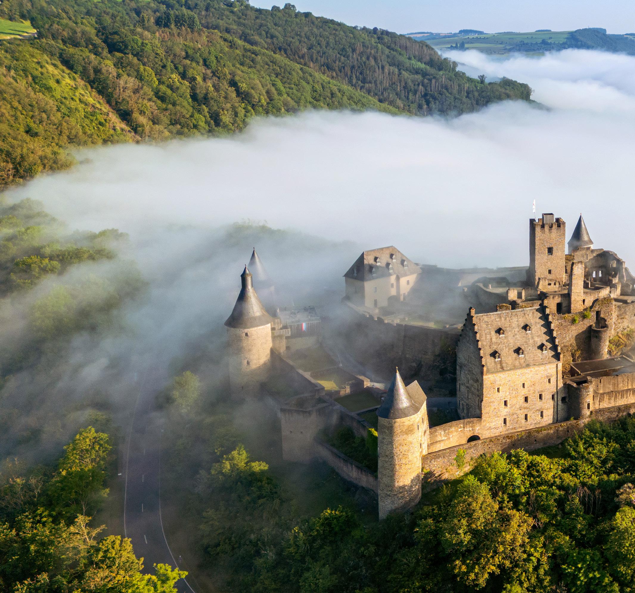 Bourscheid Castle, the largest castle in Luxembourg, towers majestically over the Sûre valley and emerges from the fog on this issue’s front cover.