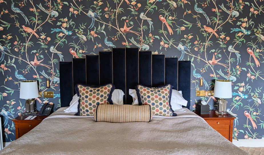 Having started at 7:45pm, midnight is within reaching distance by the time we have polished our final nightcap. We return to our room, sinking into a lap of luxury surrounded by plush furnishings, an immaculate tiled en suite with luxurious TempleSpa products, and velvet headboards above a mammoth-sized bed.