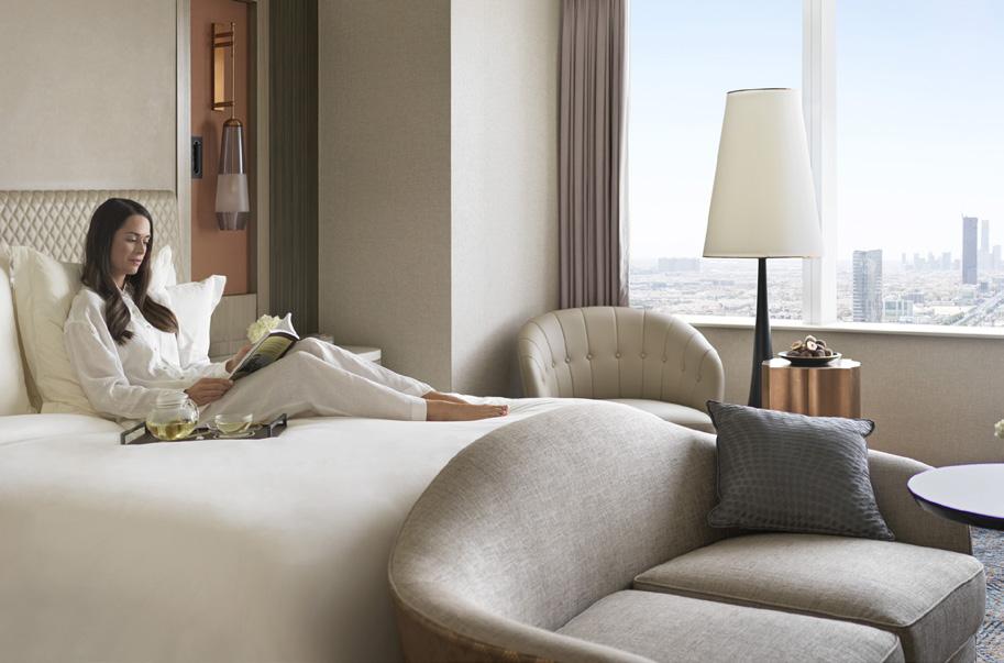 Inspired by the literal meaning of Riyadh, which translates as “garden”, the sumptuous guest rooms showcase two