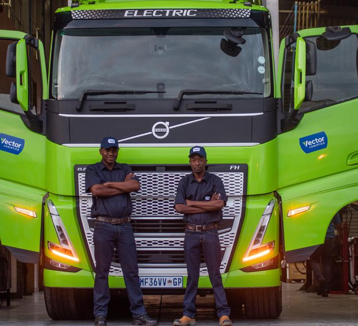 Vector’s trailblazing solution goes beyond convention by pairing Volvo battery electric vehicle (BEV) truck tractors with innovative solarpowered e-axle trailers, creating SA’s first fully electric bumper-to-bumper logistics system.