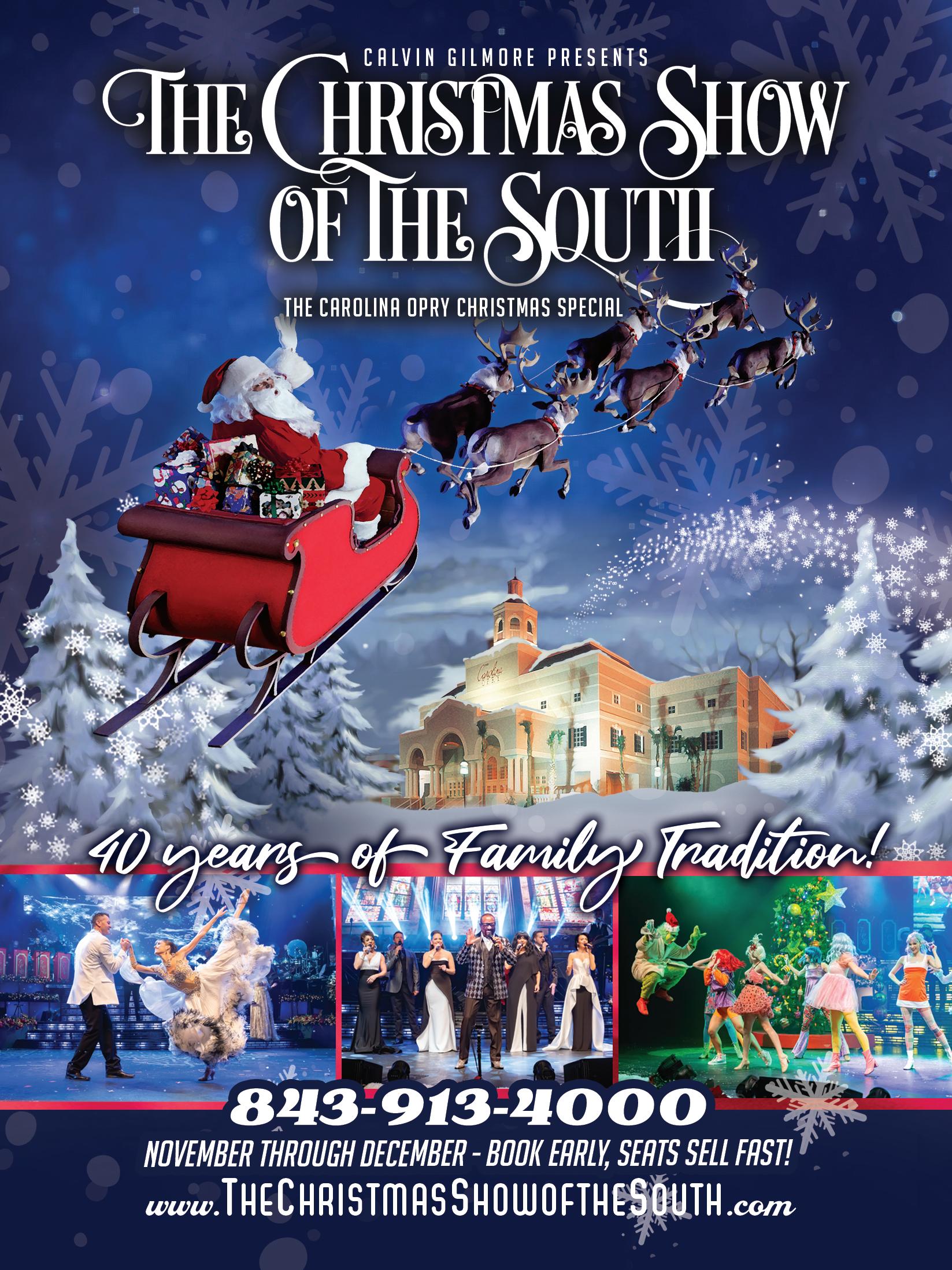 • And of course, The Carolina Opry Christmas Special is the highlight of the year. It’s a huge production with more than 35 performers, the Calvin Gilmore Band, and breathtaking holiday décor. It has truly become known as “The Christmas Show of the South”.