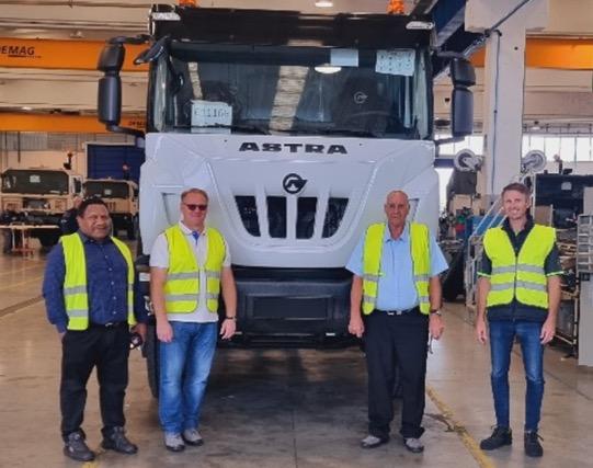 What quickly became evident was that the Astra range was designed from the ground up as a heavyduty off-road prime mover. The chassis load capacity of Astra trucks is at least 8 tonnes heavier than all common European, American, and Japanese trucks. The model selected was the Astra HD8, equipped with a 440 hp Curser engine and the Astronic automatic transmission.