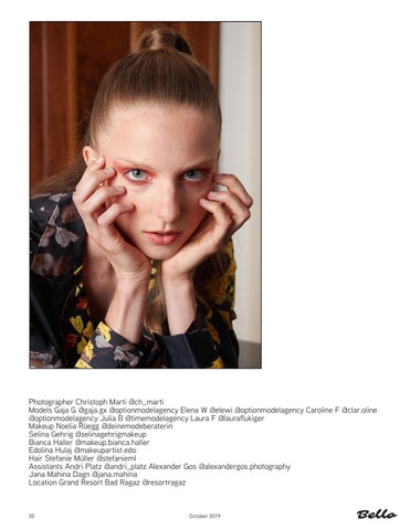 Photographer Christoph Marti @ch_marti Models Gaja G @gaja.gx @optionmodelagency Elena W @elewi @optionmodelagency Caroline F @clar.oline @optionmodelagency Julia B @timemodelagency Laura F @lauraflukiger Makeup Noelia RĂźegg @deinemodeberaterin Selina Gehrig @selinagehrigmakeup Bianca Haller @makeup.bianca.haller Edolina Hulaj @makeupartist.edo Hair Stefanie MĂźller @stefanieml Assistants Andri Platz @andri_platz Alexander Gos @alexandergos.photography Jana Mahina Dagn @jana.mahina Location Grand Resort Bad Ragaz @resortragaz