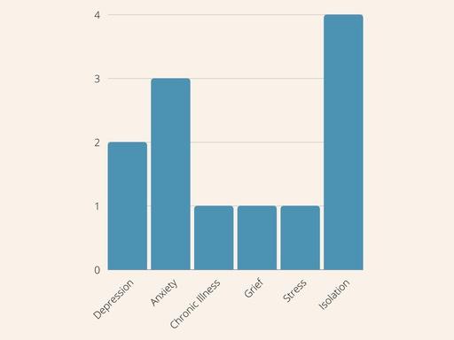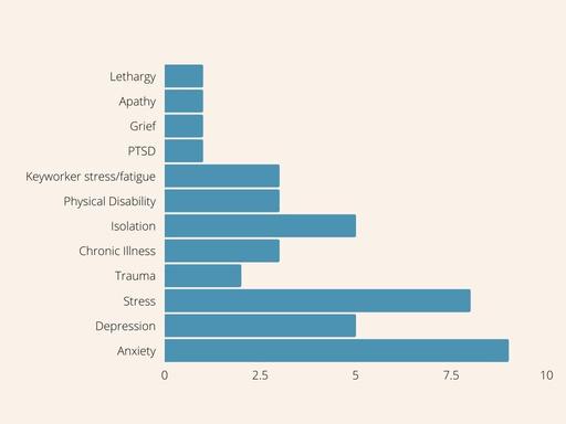 Fifteen people aged 19-65 referred themselves into the project for a variety of reasons - from grief and carer stress, to isolation and unfulfilled creative goals.