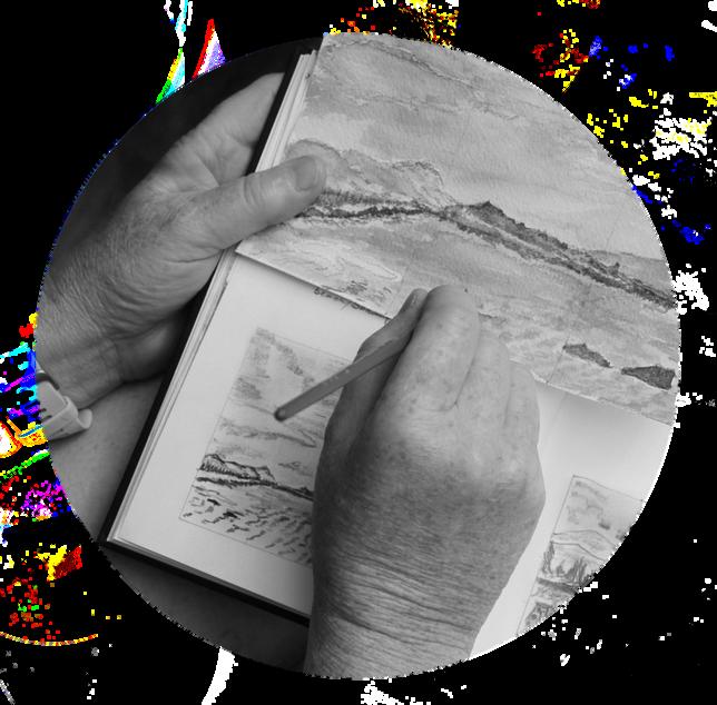 During the first lockdown of 2020, at a time of acute national anxiety, the pilot 'Art Journal Project' - funded by Scottish Government Supporting Communities Fund - was a 'community well-being' focused programme of guided workshops, bespoke tuition and specialist support from professional artist tutors. Aimed at adults during lockdown who may be struggling to manage stress or to ‘make space ’ for creativity in order to achieve balance and well-being, the project particularly targeted carers, key workers, people suffering from physical or mental health issues, and people struggling with loneliness, isolation, grief or trauma.