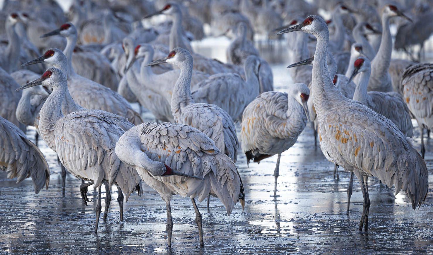 Sandhill cranes have been migrating through the San Luis Valley (SLV) for centuries. Their landing pad is the Monte Vista National Wildlife Refuge, where they take advantage of the open water and wetlands where they may roost. From there, their migratory path leads to New Mexico’s Bosque del Apache, or northward, depending on the season.