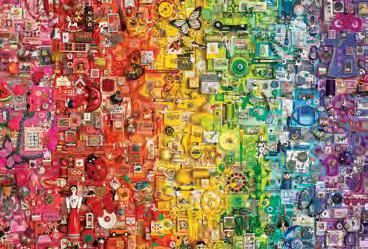 The Rainbow Project is perfect for puzzlers who enjoy discovering the image as it is assembled. The original collage was a single installation that artist Shelley Davies built for Cobble Hill Puzzle Company. It took over four months to assemble and was 27 feet long!