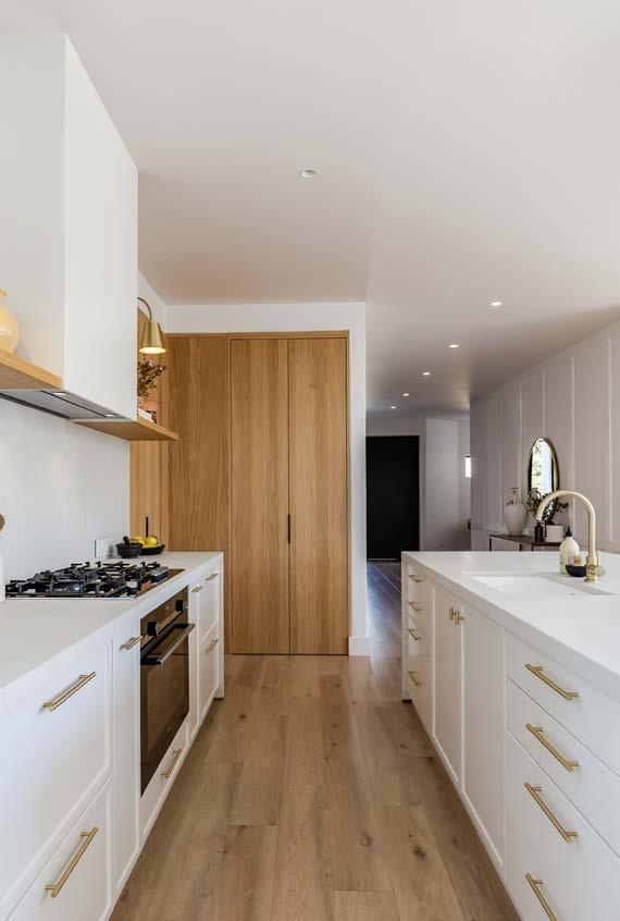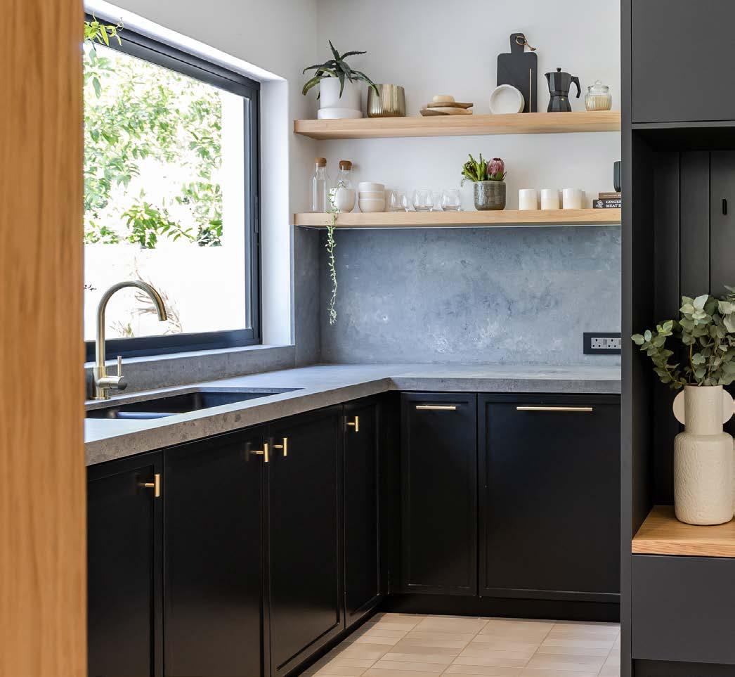 Nature is calling Second to the kitchen, your bathrooms are the rooms in the house where you will be spending the majority of your budget. That’s why it’s important to choose timeless finishes so you don’t have to redo and upgrade them every five years. For our daughter Sienna’s (7) en suite, we allowed her to choose her own paint colour. Since her bathroom is very small and lacks a lot of natural light, we wanted to keep the scheme soft and natural. She chose a dusty peach, and I think all the blushy hues turned out so stunning paired with the brushed brass finish on the taps! The handmade pill-shaped concrete basin, oak vanity, walkin shower, arched brass mirror, and herringbone pattern tile, all complete the look beautifully.