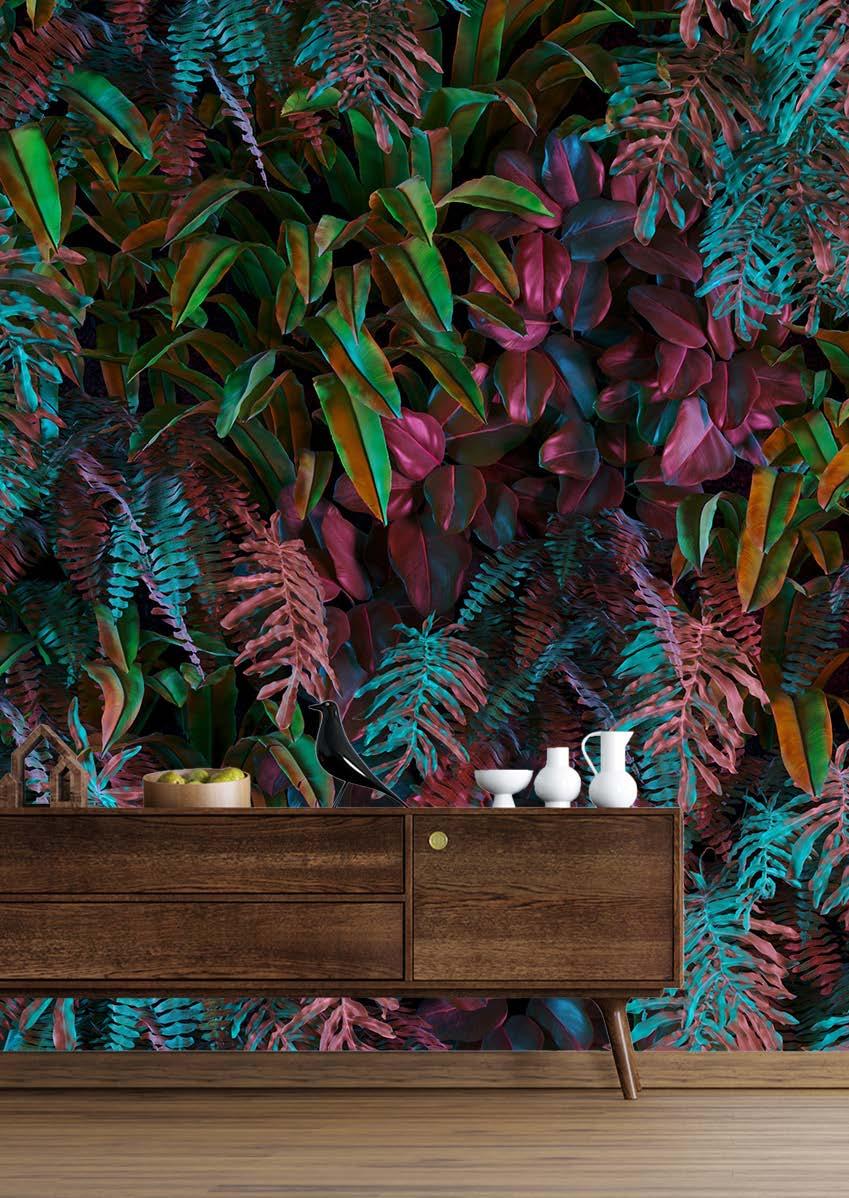 To me, colour sets the entire mood for a space. Yet, what’s important to consider is not simply the colour but also the tone of the colour. For example, if you’re looking at green, spend a couple of minutes to see what other colours you see within the green pigment. Is it a little more blue? A little more brown? Maybe more on the yellow spectrum? Or purple? These undertones have the power to change the character of your chosen colour completely. A sunshineyellow feels bright, happy, and playful, whereas ochre or mustard hues tend to be more serious, masculine, and sultry. Likewise, purples such as lavender, indigo, and violet set three completely different moods. When selecting your colours, always ask yourself what kind of mood you’d like to feel within that space and how you personally feel when you look at colour X versus colour Y. It’ll help you make your decisions way more intuitively. When choosing colours, I also like to work in numbers using two to four base colours and then an additional two or three neutral colours (e.g., white, black, cream, or grey) to ground and complement the look.