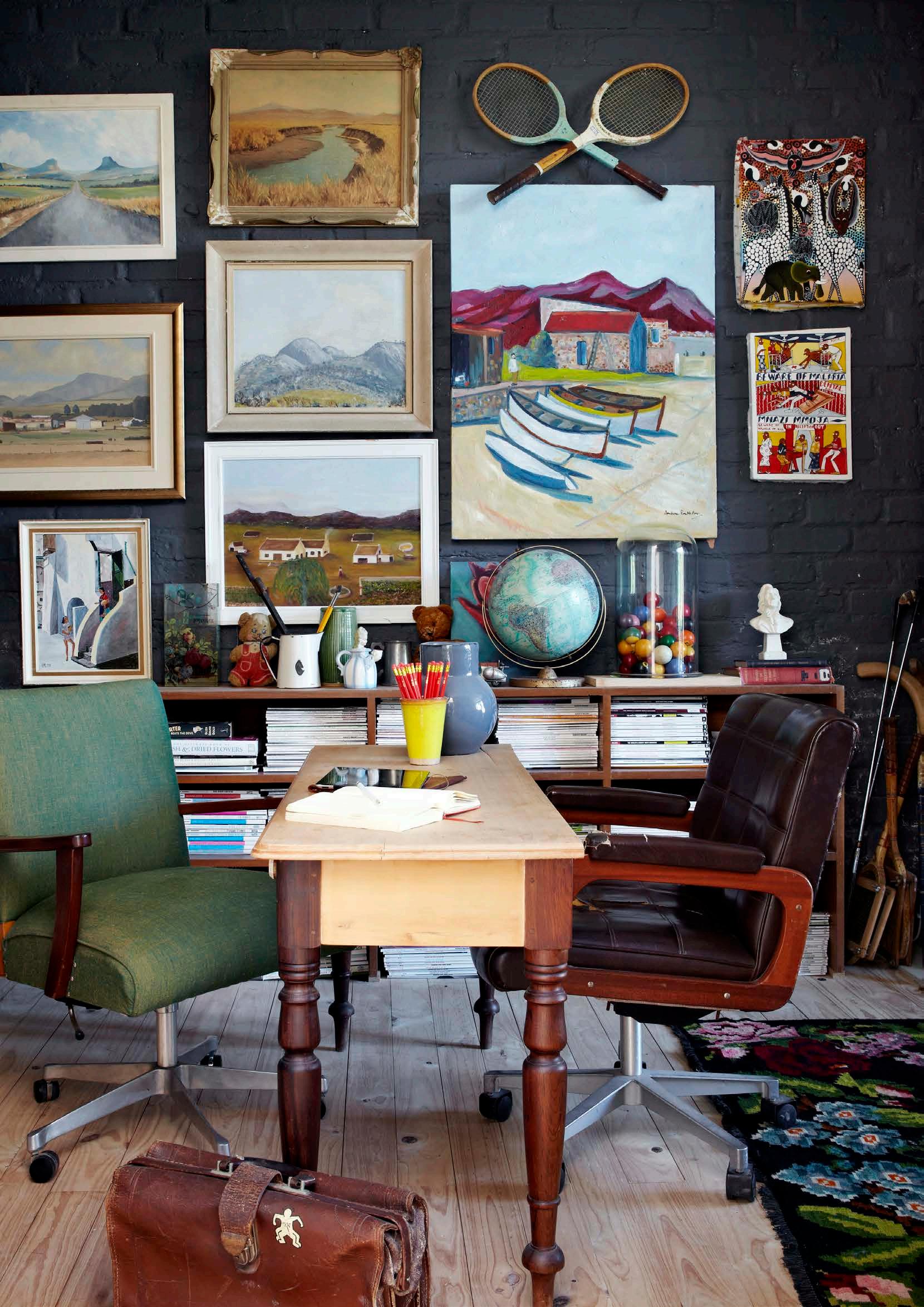 FAR LEFT: The walls of the private study are adorned mainly with South African landscape paintings. The boats are from Zanzibar.