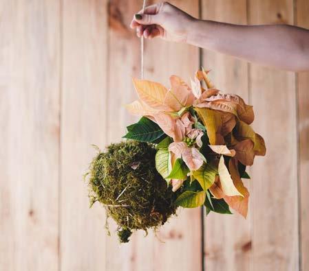 Take your Christmas table to new heights and add drama by creating a suspended pink poinsettia installation without sacrificing precious table space. Poinsettias are a classic Christmas element and widely available during the festive season. Suspend a collection of poinsettia kokedama above your festive table at different heights to create a show-stopping and unexpected impression.