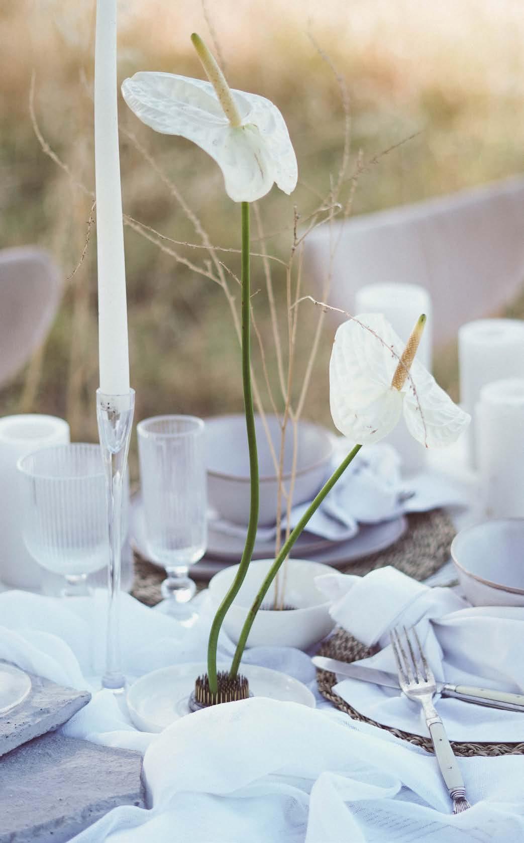 Whether it’s an office party, intimate wedding, baby shower, Christmas dinner, friends reunion, backyard braai, or your grandmother’s annual Sunday roast, we all love a good festive gather ing to signal the advent of the summer holidays. To help you deck your table to the nines, we’ve asked Wellington-based event floral designer Denicke Cronjé (aka The Grand Botanist) to share her take on the trendiest festive tablescapes. Pouring every drop of passion and creativity into these bold and elegant designs, there’s an aesthetic to tickle everyone’s fancy...