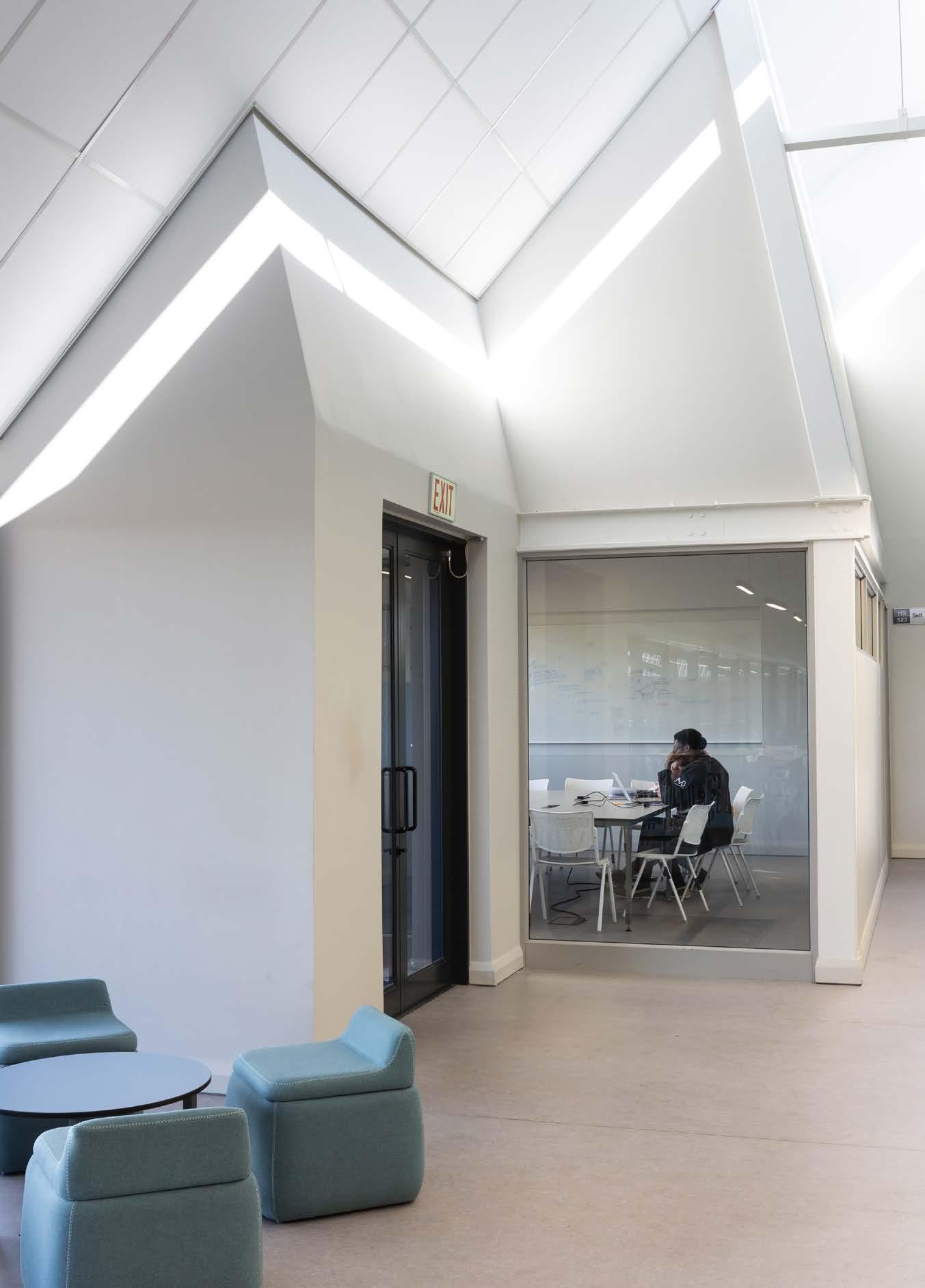 The entire campus breathes with shared courtyards and spaces that flow into one another. The gym housing cardio equipment features double-volume spaces with beautiful views of the playing field — allowing athletes to feel connected to the action while training.