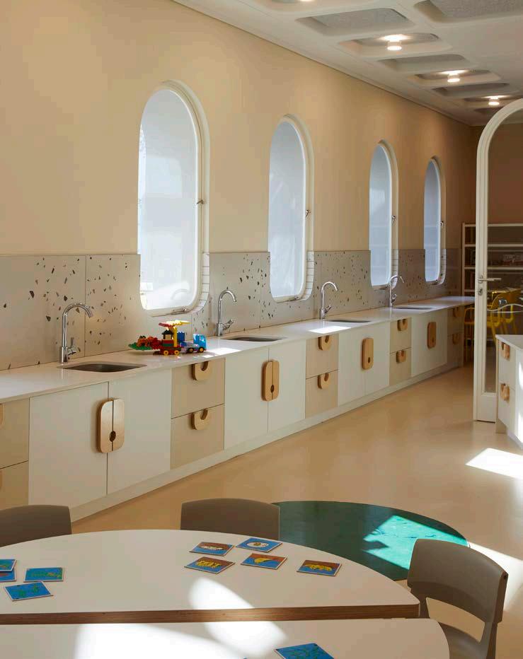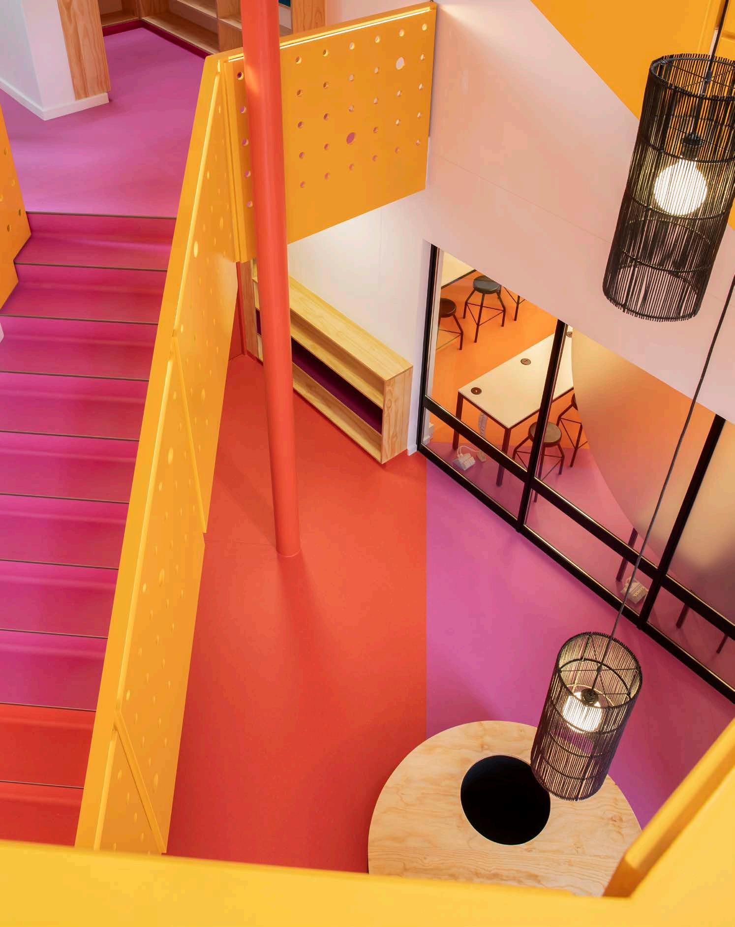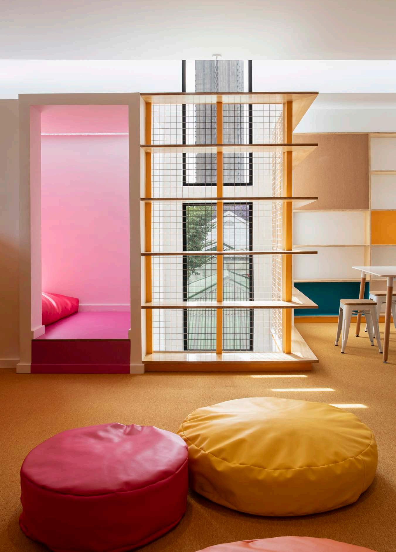 There is no doubt that these spaces have an appeal beyond learning itself — and that appeal is architectural as much as it is aesthetic. Physical environments curate experiences — wonderlands, in Hubo Studio’s design of schools, or indoor playgrounds in the case of Meshworks Architecture. Between the two of them, celestial installations and flaming orange slides might be the exact opposite of dark academia, turning schools into places of adventure that make a different kind of fantasy tangible.