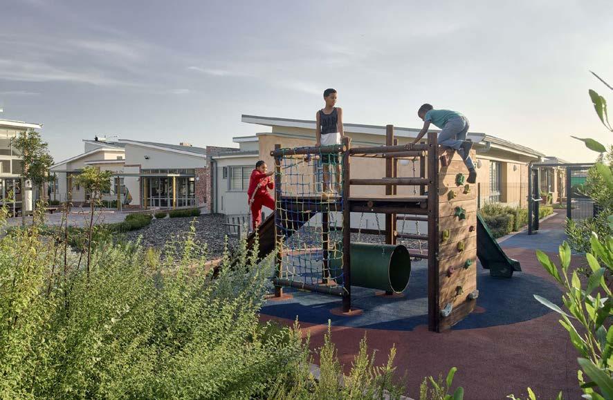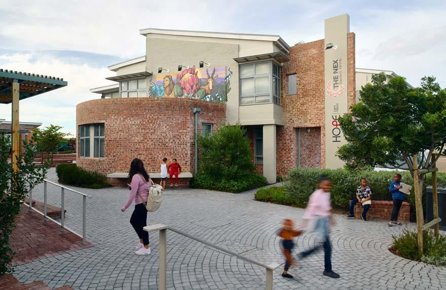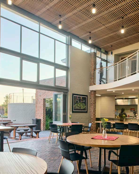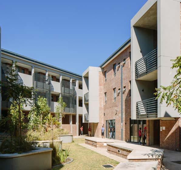 GAPP’s design philosophy advocates for both environmentally- and human-conscious solutions, creating spaces that harmonise with their natural and built contexts. Further north of the country, Sol Plaatje University in Kimberley is home to The Eco Centre, which serves as the university’s recycling and maintenance hub and was designed in line with green building principles. Other sustainable principles, seen in the NWU Masterplan, reduce the need for new construction. At UWC and UCT, green building certifications and sustainable materials ensure long-term resilience, while the firm’s public school projects feature solar-powered systems and waterefficient landscaping, aligning with environmental and budgetary realities.