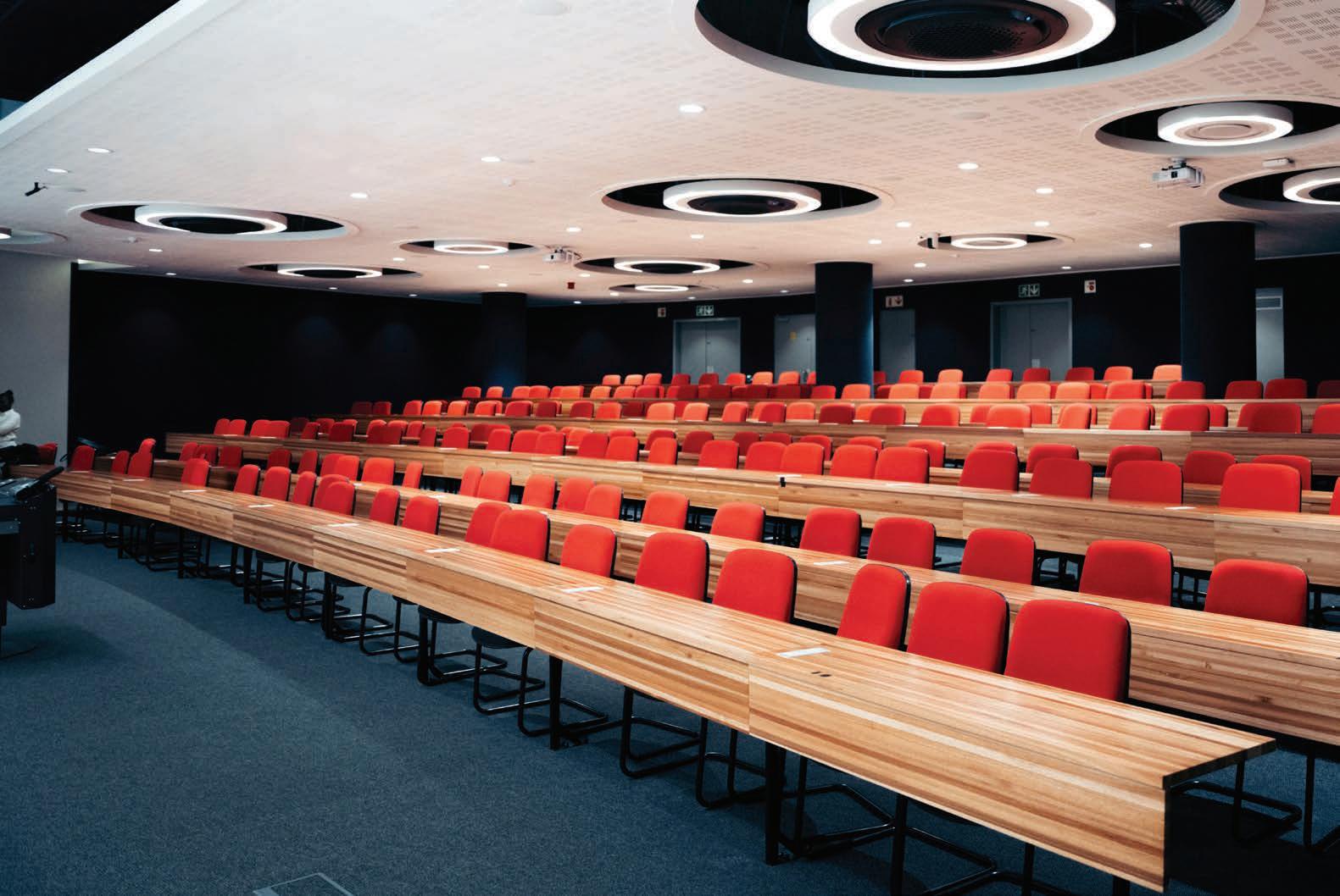 Students face their most challenging learning in lecture halls. Universities are known for fast-paced lectures and students must stay alert to keep up. There is also a sense of excitement about a new class, a new face at the front, and the whirlwind of knowledge that is yet to unfold. Auditoriums are therefore an essential part to curating this experience.