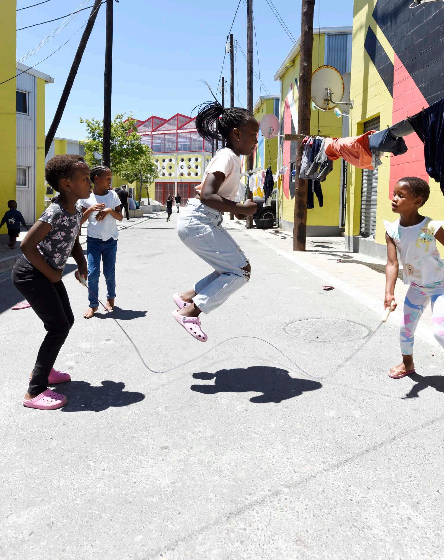 With the crèche and the football academy functioning symbiotically, children can graduate from Nonzame’s Educare directly into the Ubuntu program, both of which allow access to a kitchen (stocked with produce from the rooftop gardens), outdoor play areas, and community events infrastructure.