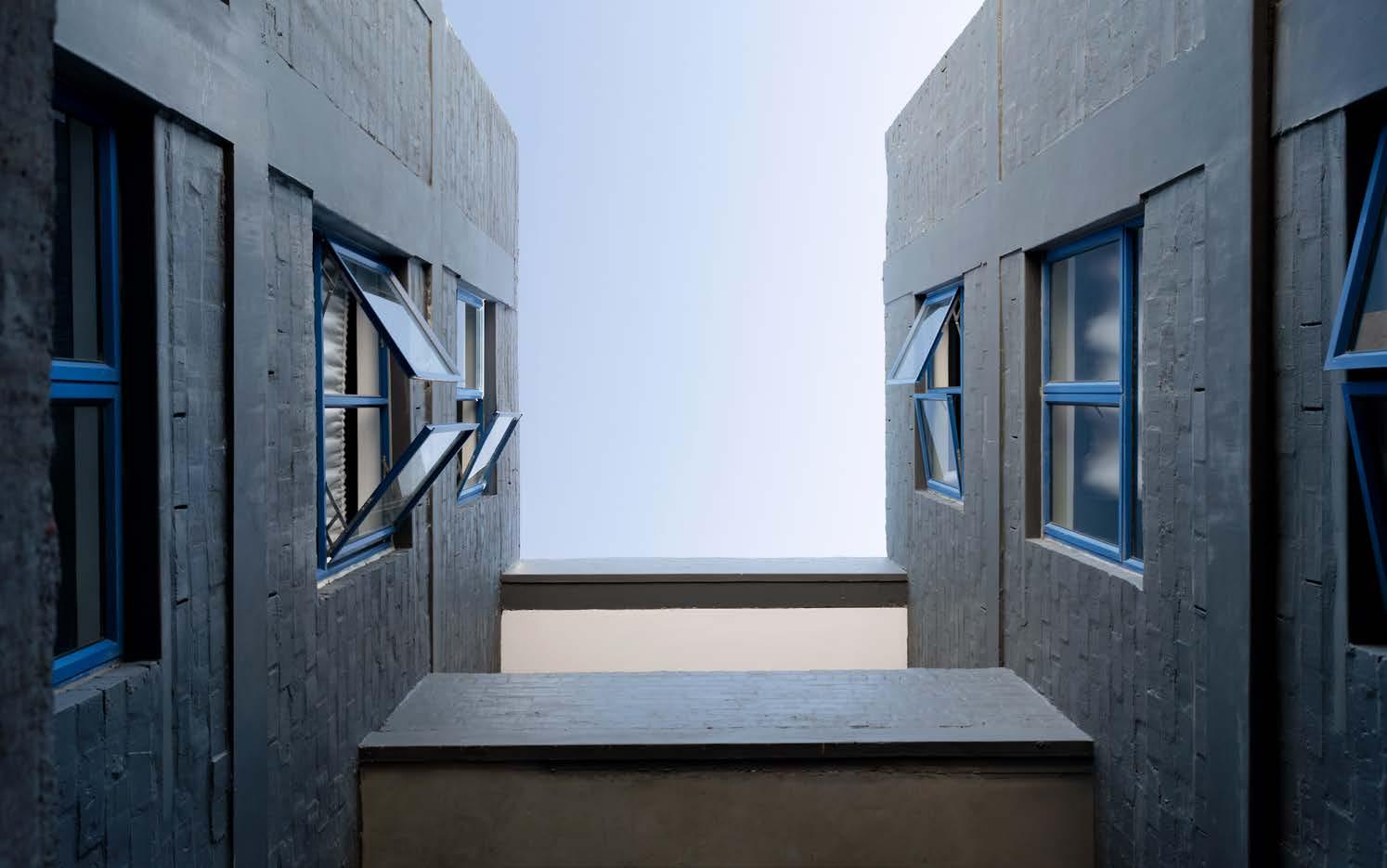The rooftop addition needed to be lightweight — not an easy requirement to fulfil. Yet this constraint brought opportunities to create a distinct architectural language and explore lightweight construction that regulates heat and insulates sound. As a result, the building was assembled as an entirely steel frame structure (composed of steel sheeting, insulation, and dry wall), with negligible use of concrete and brickwork. The structure offers openness, fluidity, and ephemerality against the hard, heavy, and dark spaces of the 1979 apartheid buildings.