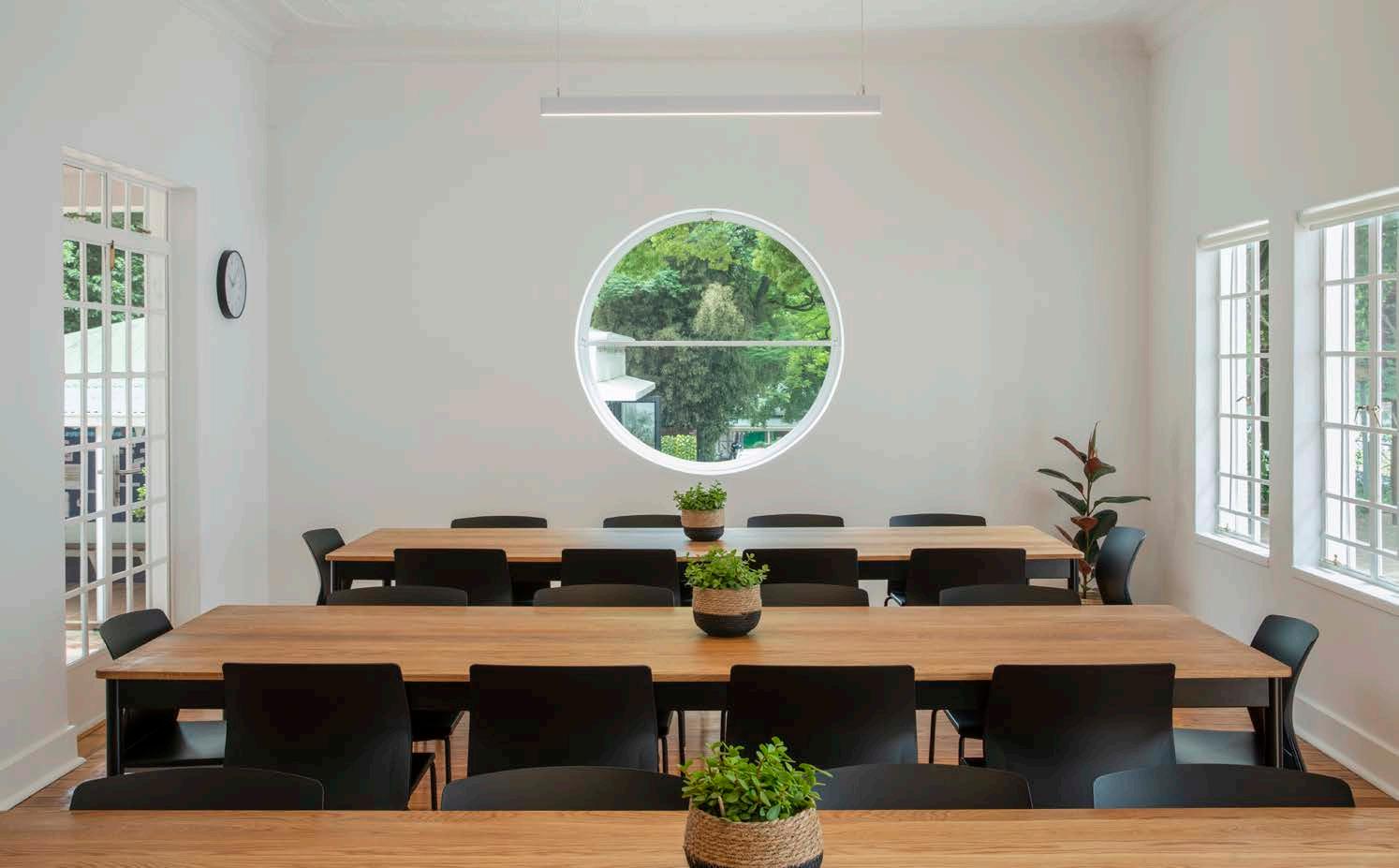 Operable Acoustic Partitions | Surfaces: Salvocorp | Ceramic Wall Tiles: Union Tiles | Paint: Dulux | Ceiling Panels: OWA Acoustic Ceilings | Furniture: Cecil Nurse | Custom Tables: Trespa by Labfurn | Aluminium Doors and Windows: HBS Aluminium Systems, Govenders Aluminium & Glass | Insulation and Dry Walls: Saint-Gobain Africa