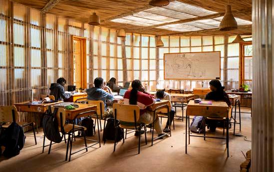 “The idea was to harmonise with the natural environment while providing a safe haven from the wilderness and oppressive summer temperatures. The planted roof acts as a buffer against the heat. Together with the pool and bio filter, it contributes to cooling the building envelope while also providing an evaporative cooling effect on the incoming air.”