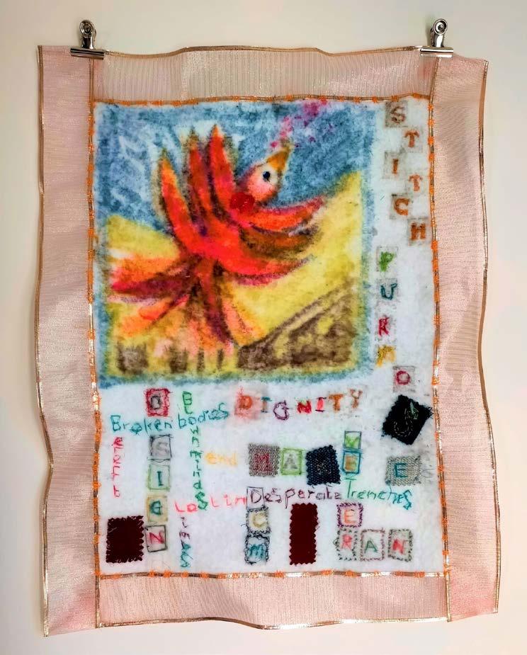 Textile artist Louisa tells the stories of vulnerable people who are often misrepresented, using carefully chosen materials and techniques that best realise her vision. Recently her work has focused on mental health, informed by her own personal recovery journey.