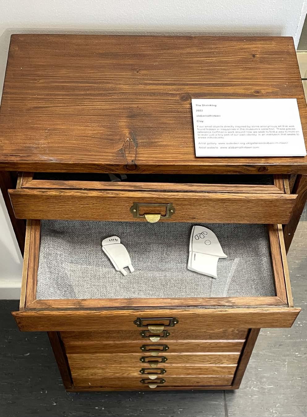 Culminating in four physical exhibitions across the UK in 2022 and one virtual exhibition on Outside In’s website, the project highlighted the importance of recognising lived experience as a valid form of expertise, and in putting the artists’ voice at the heart of research and curation.