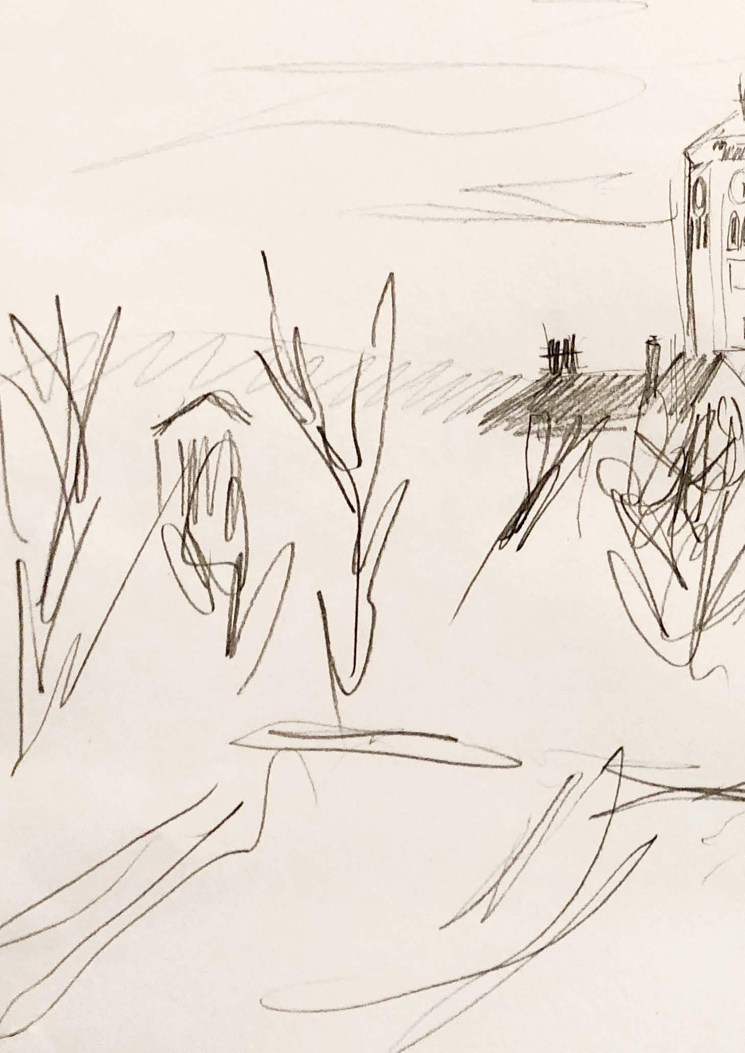 of our body in relation to other things. Jabloner’s sketches appear as if she was designing spaces for music-making with her inclusion of pianos. If she was influenced by Steiner’s method, I wondered how her spatial arrangements and curved walls might relate to the behaviour and creative expression she was hoping to cultivate within.