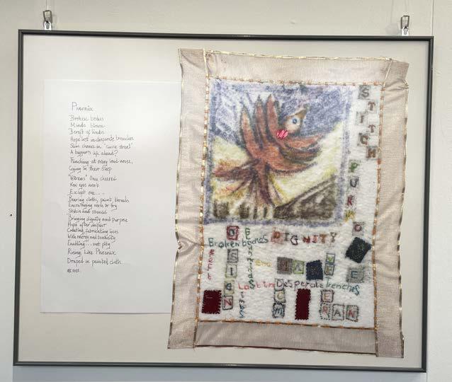 Angela enjoys mixing materials, traditional and digital techniques to create new works. A key part of her practice is the inclusion of poetry or written elements, using them to understand ‘what being alive means to me’. Evocative, textural and poignant, her work explores themes of humanity, empathy and selfreflection.