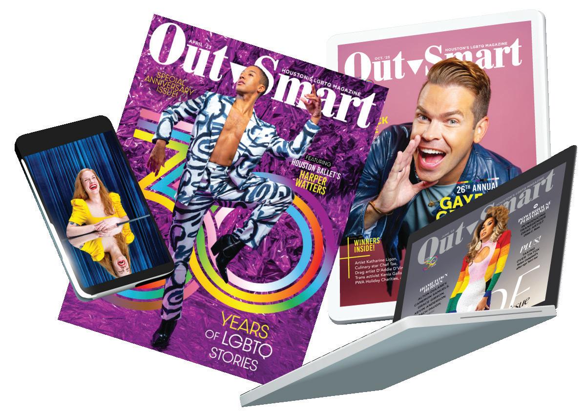 As always, we want to thank our contributing writers and photographers whose work is essential in telling Houston’s LGBTQ stories. Our readers, advertisers, and donors who sustain the work of this magazine and the OutSmart Foundation also deserve special recognition. If you believe community-driven journalism matters, please consider donating to the OutSmart Foundation for LGBTQ News and Media.