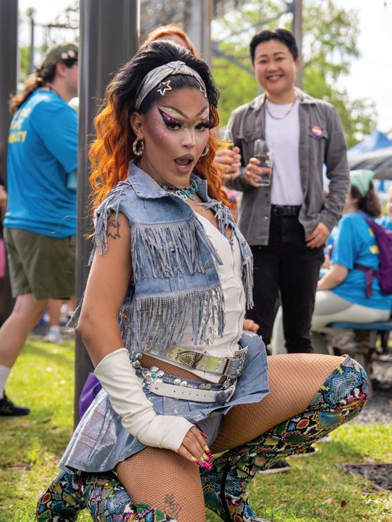 Describe your performing persona. I try to convey my authentic self both in and out of drag, so anyone I come in contact with knows how much I appreciate them. Being authentic is the best gift you can give, so it stays top of mind for me.