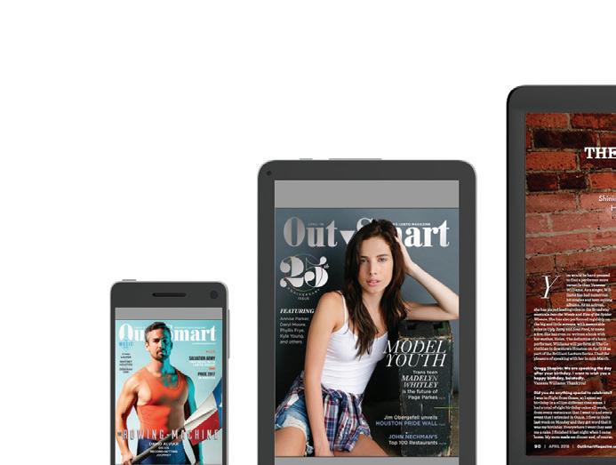 Subscriptions: $42/12 Issues, $78/24 Issues Publishers of OutSmart Magazine 3406 Audubon Place • Houston, TX 77006 713.520.7237 • 713.522.3275 Fax