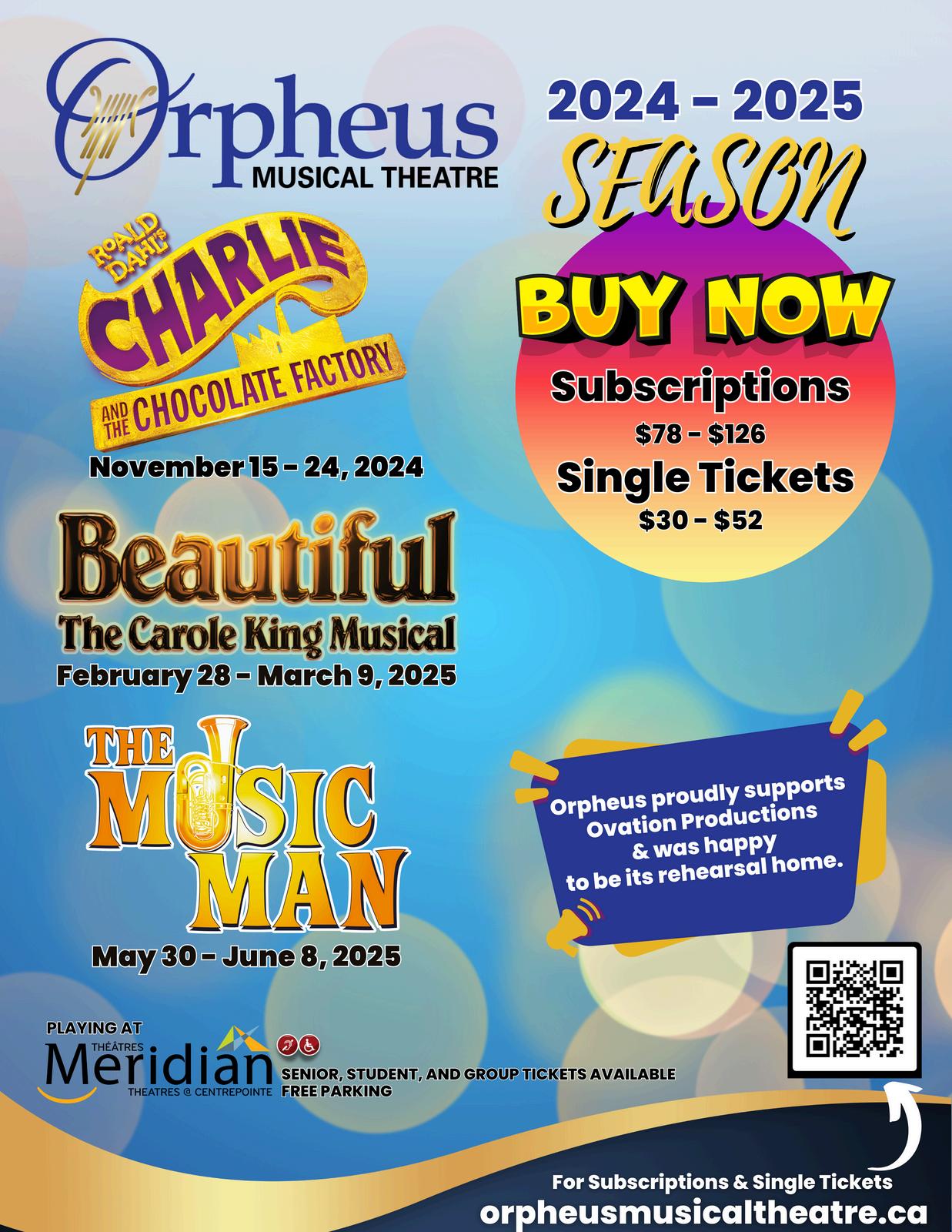 Ovation Productions gratefully acknowledges the generous assistance provided by Meridian Theatres @ Centrepointe Volunteer Company.