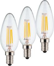 70 72827 LED Filament Kerzen Lampen klar 3er Pack 3 Watt (=40 W) E14, 470 lm, 2700K, ca. 10.000 Std., EEK: E statt 8.49