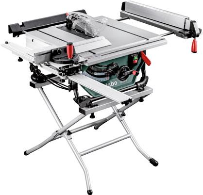 Metabo Präzisions-Tischkreissäge TS 254 M mit Untergestell TSU und Schiebeschlitten TS kompakte mobile Tischkreissäge mit guter Schnittleistung und hohem Arbeitskomfort. Verwindungssteife Rohrrahmenkonstruktion für härteste Ansprüche auf Baustelle und Montage. Kabel und sämtliche Anbauteile für den Transport am Gehäuse verstaubar. Exakte Sägeblattneigung über Zahnkranzführung, automatische Rückstellung auf 0-45° nach Hinterschnitt. Einfacher Sägeblattwechsel durch Spindelarretierung. Präzise, ausziehbare Tischverbreiterung und -verlängerung für extragroße Auflagefläche. Lieferumfang: Hartmetall-Sägeblatt mit Wechselzahn (40 Zähne), Untergestell TSU, Parallelanschlag, Winkelanschlag, Schiebeschlitten TS, Tischverlängerung, Tischverbreiterung (rechts), Schiebestock.